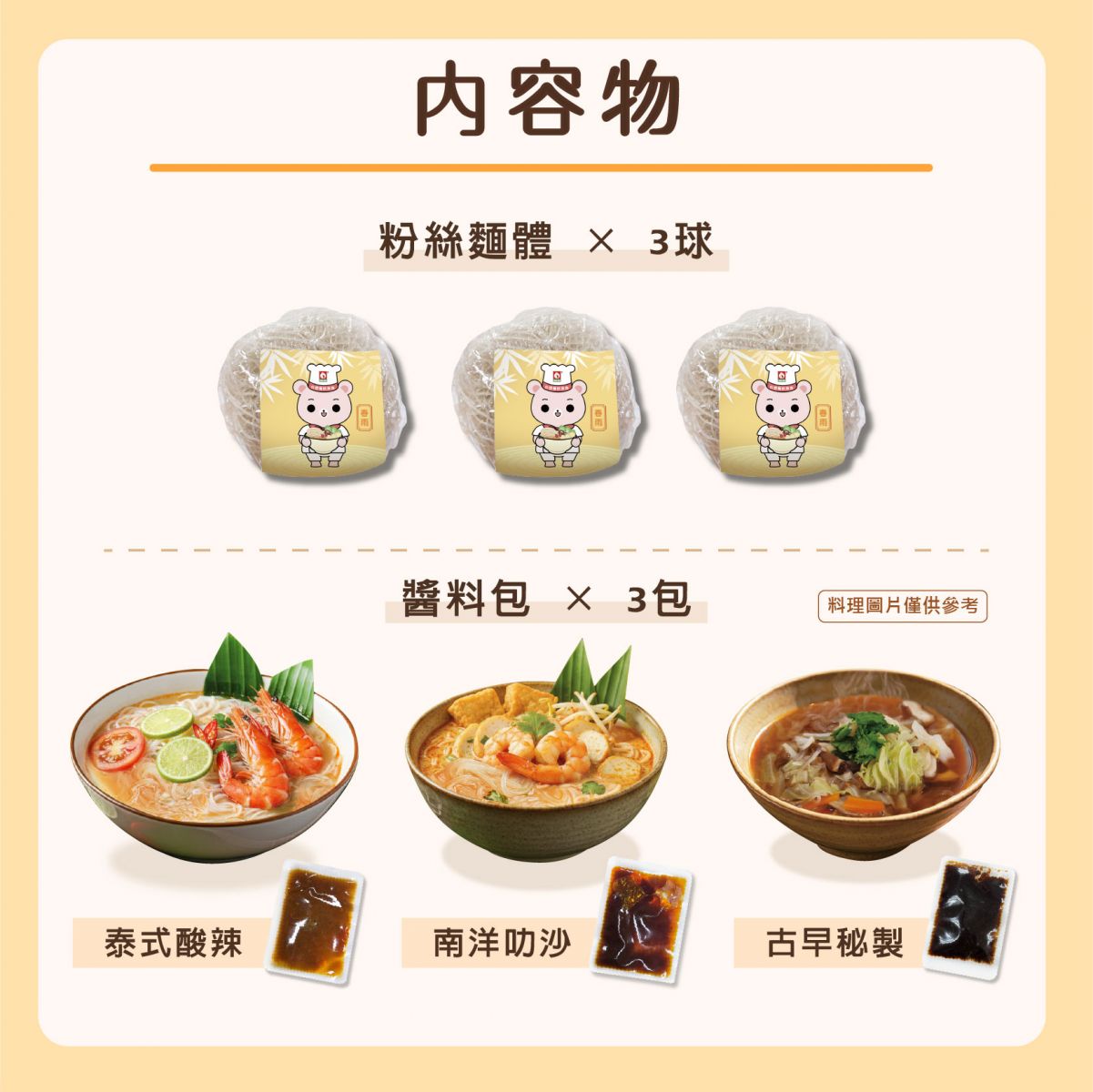 每份皆為「粉絲 + 專屬醬料包」的完整組合